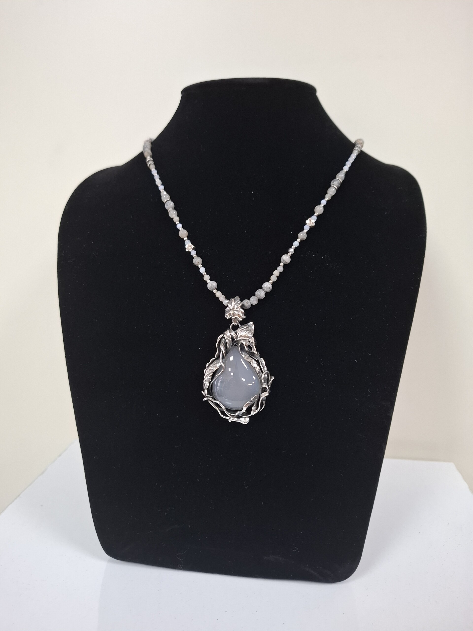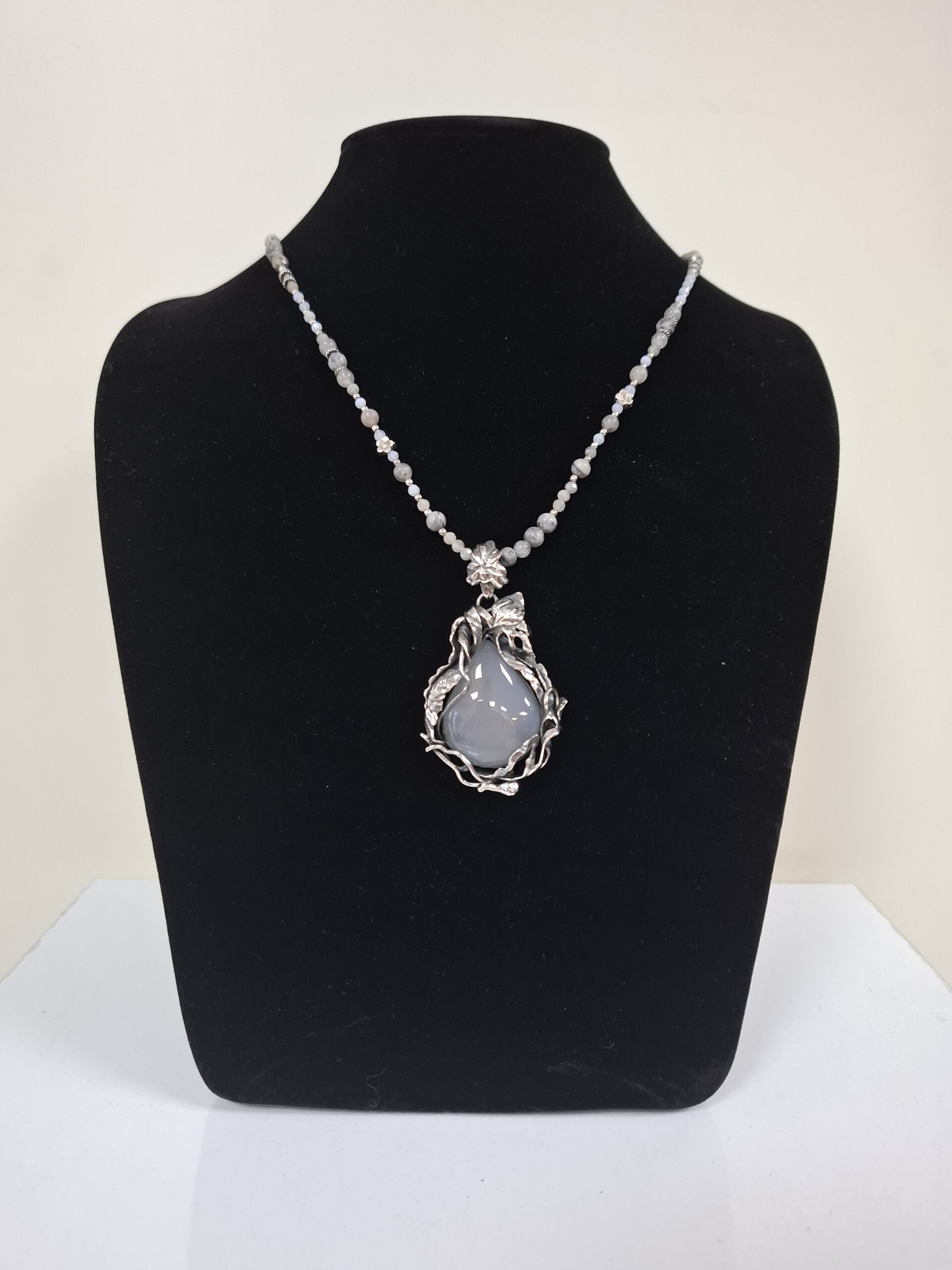 Медальон с бял халцедон.