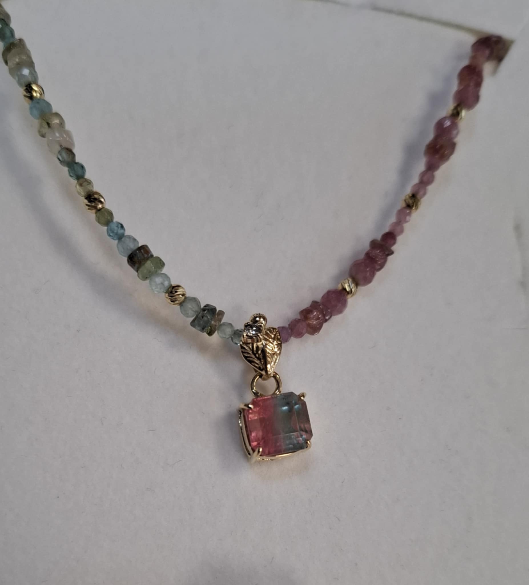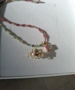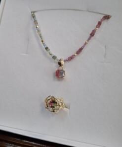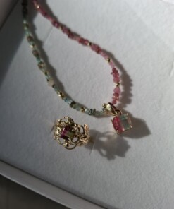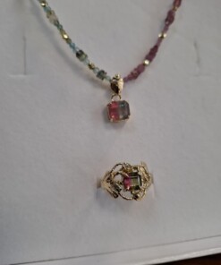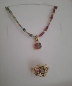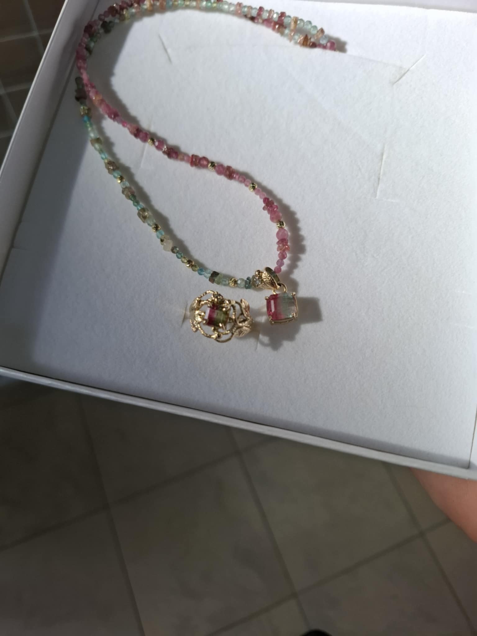 Златен пръстен с турмалин диня, медальон с турмалин диня G698