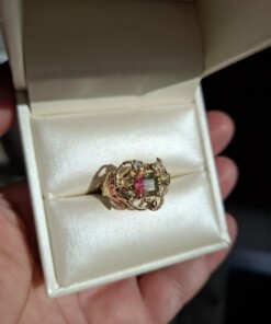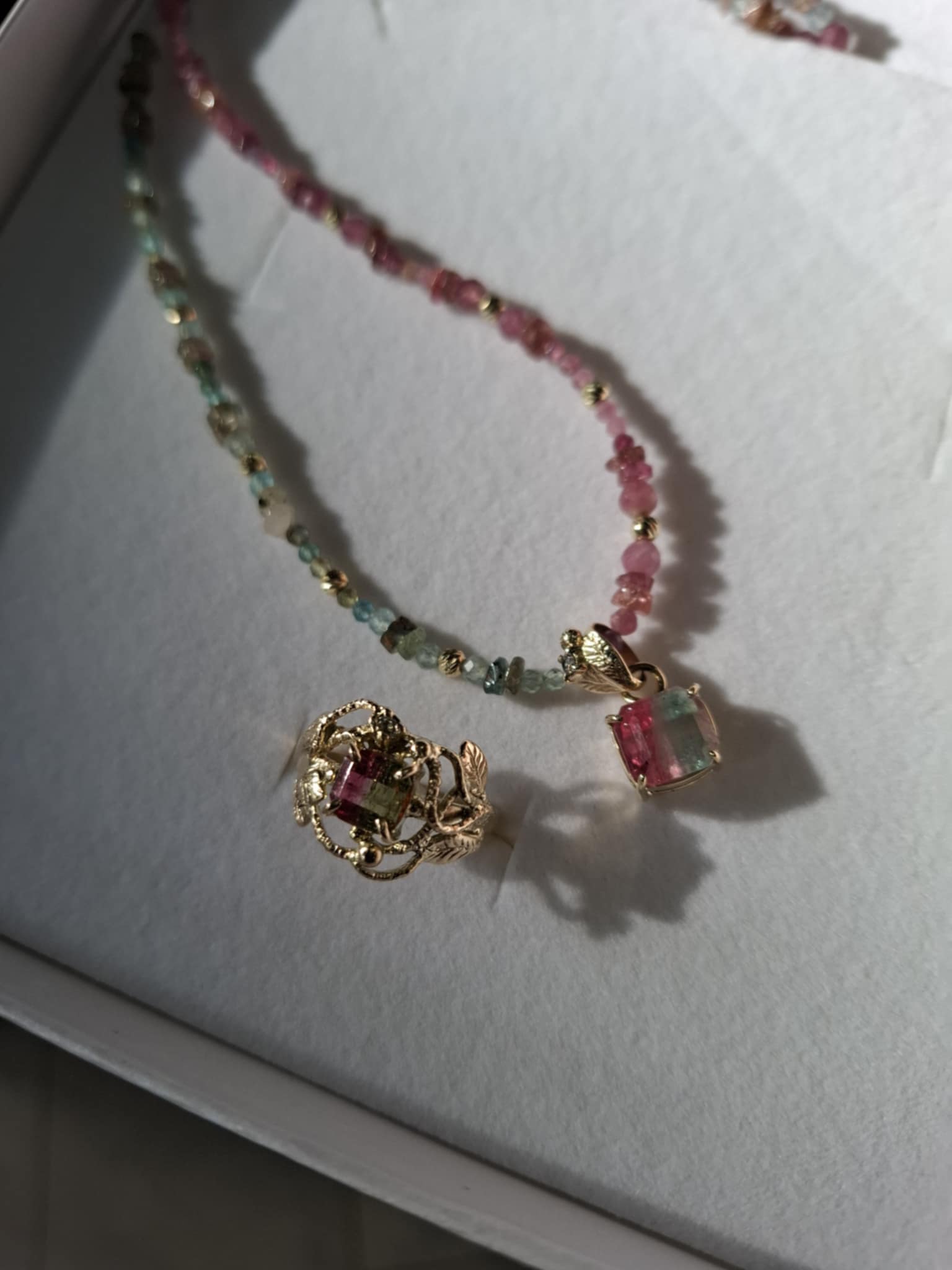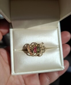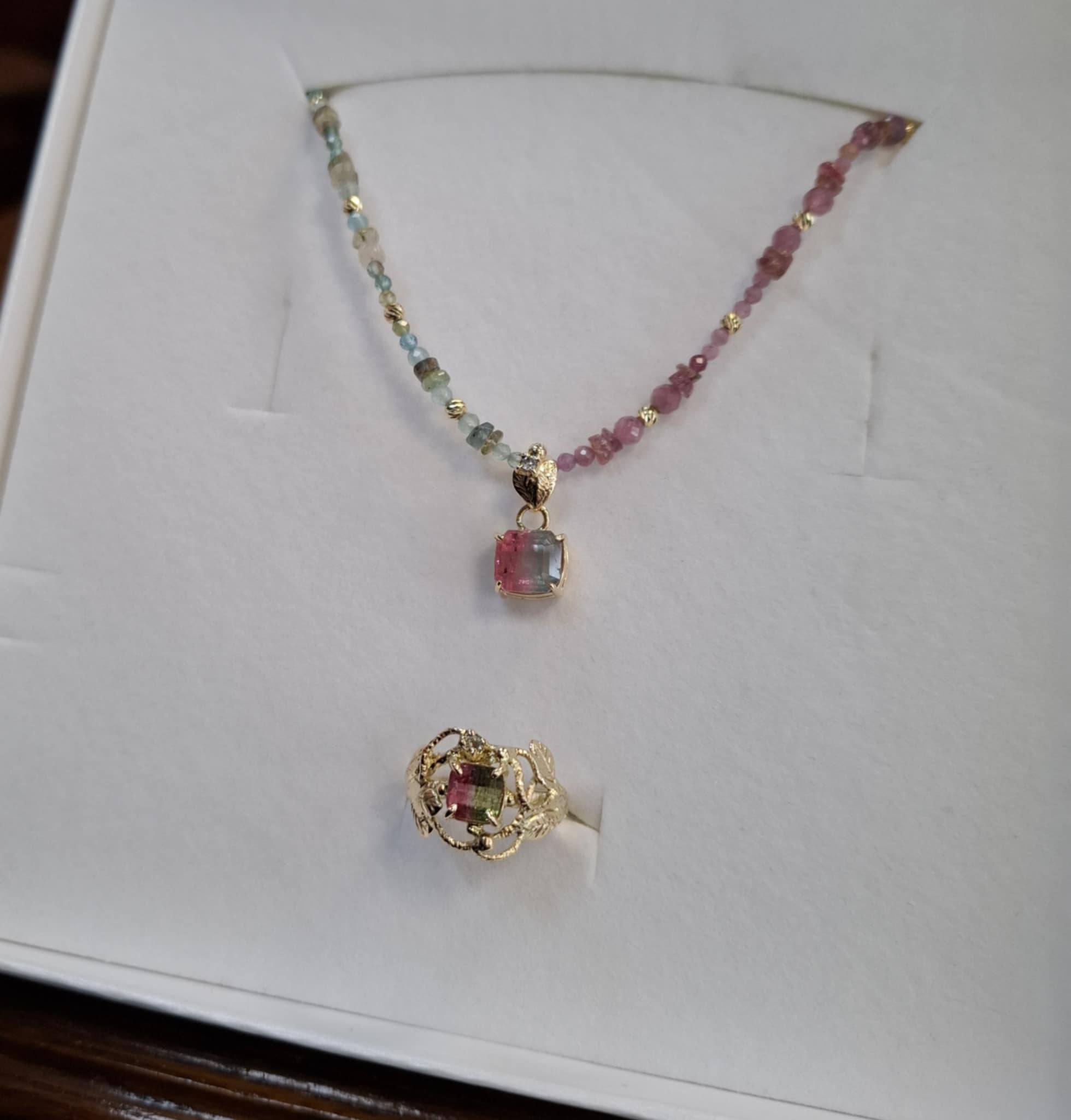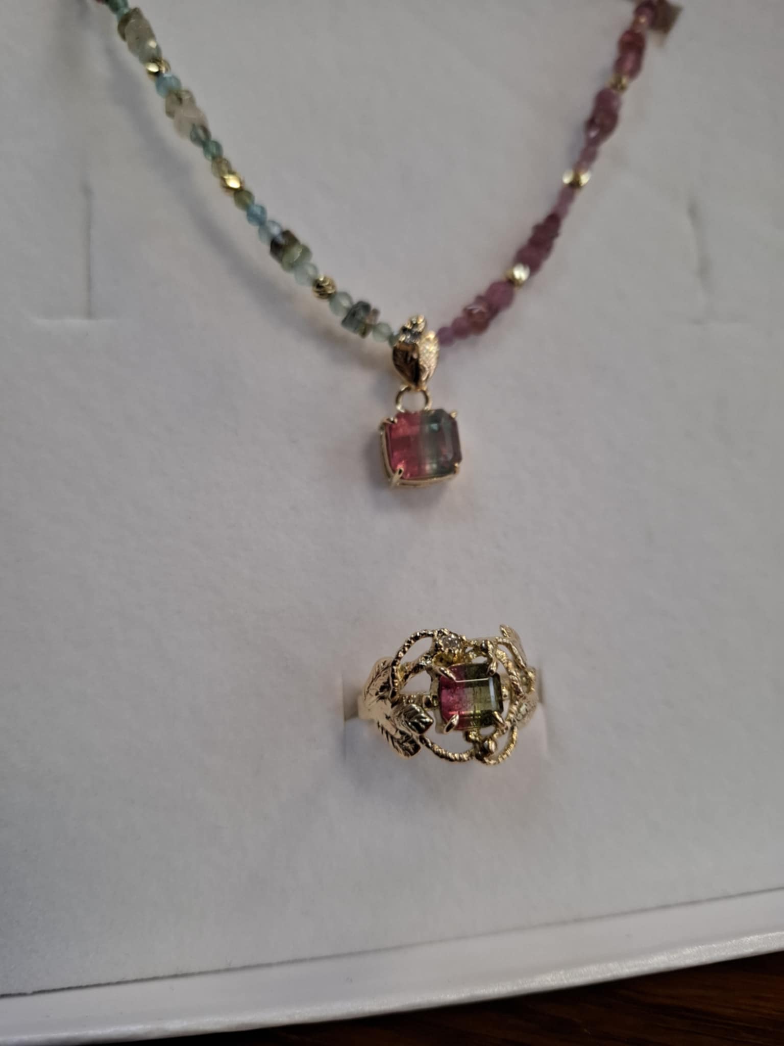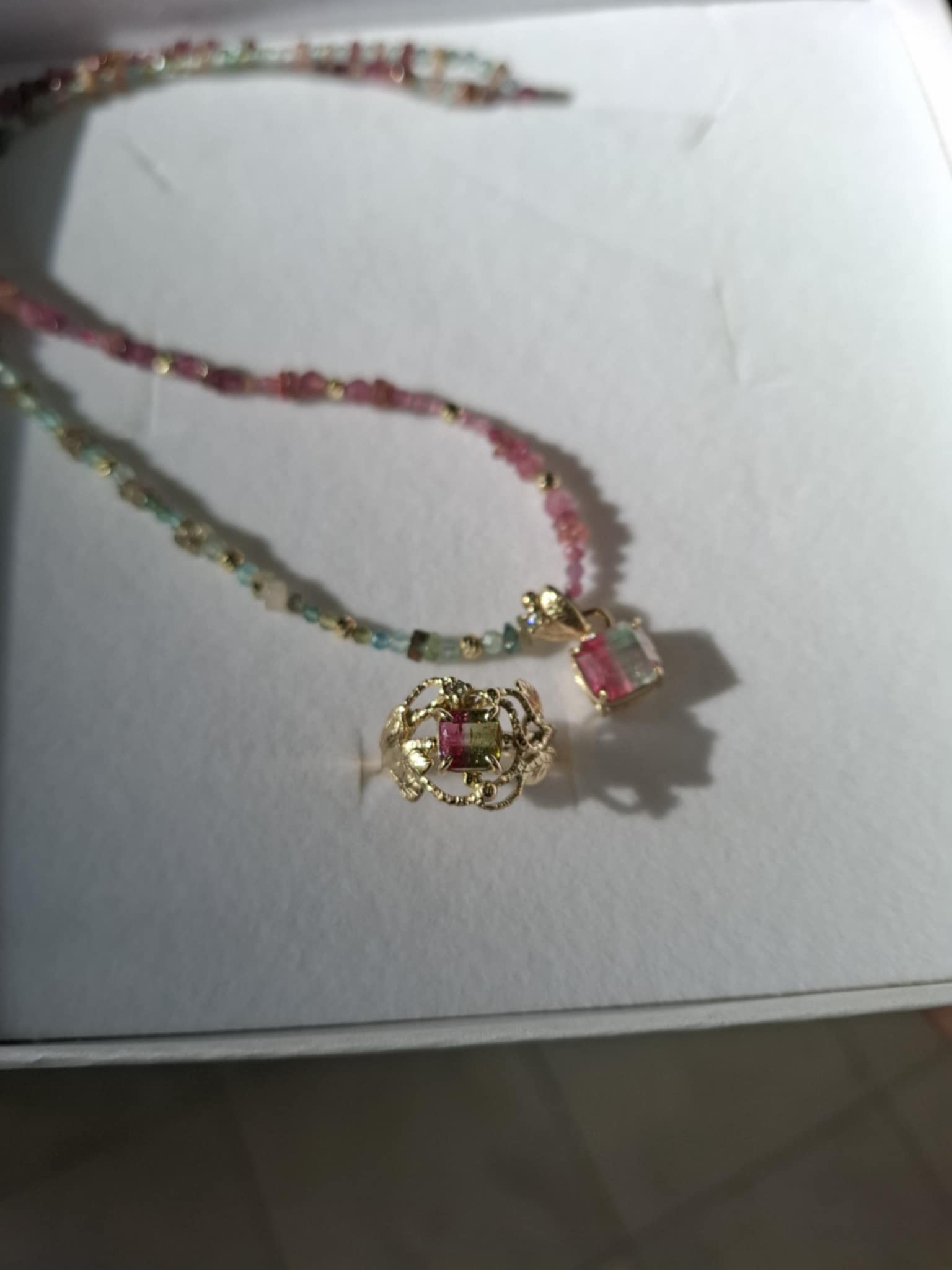 Златен пръстен с турмалин диня, ръчна изработка, уникат.