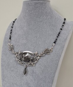 Разкошно колие „Езеро на лунна светлина“, изработено от сребро, с камък сребрист обсидиан с интересна игра на светлината по повърхността му.